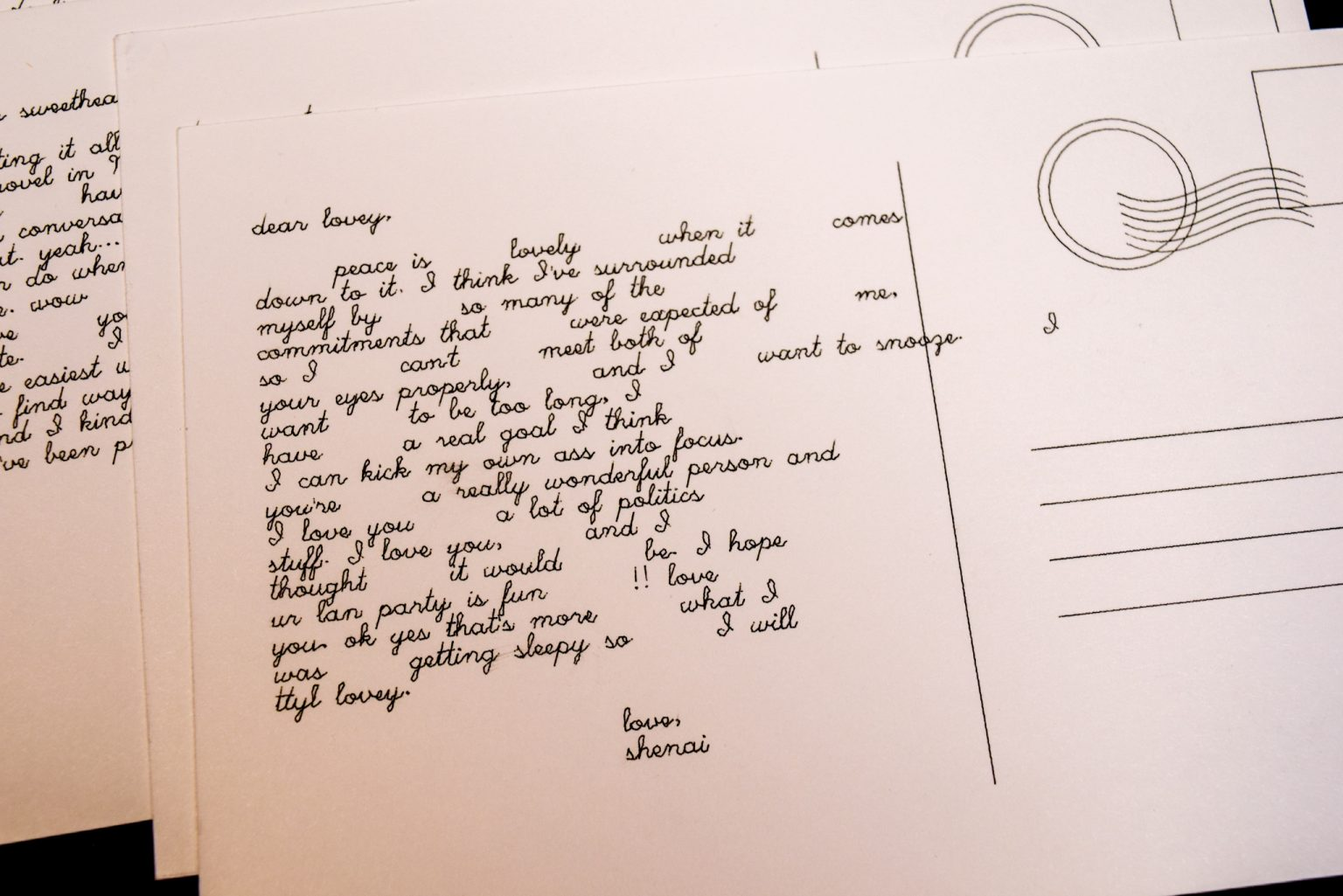 Set of 12 generative love letter postcards, a data visualization of the first twelve months of my relationship with my girlfriend. Exhibited April 2023 in the Frame Gallery in What the Historians Would Not Say, an art show centered on the queer Asian American experience.