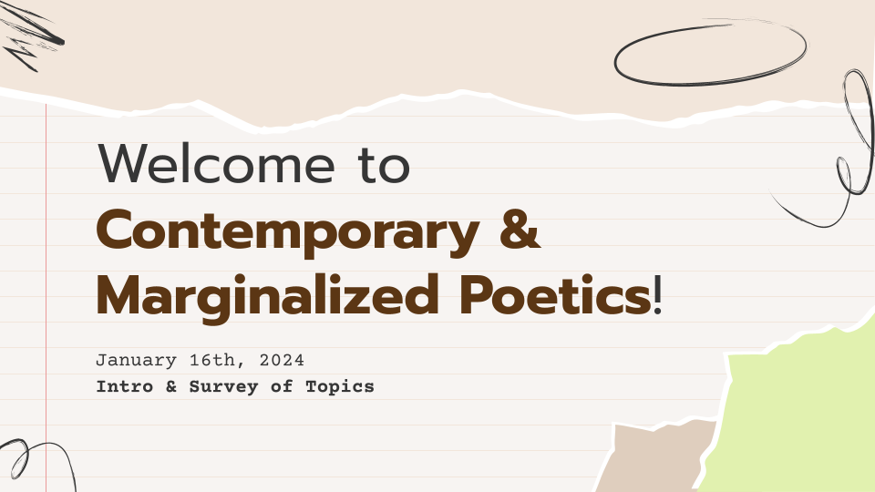 Teach original course on marginalized poetics to dozens of students over two semesters. Foster one-on-one relationships and sense of community, encouraging creative growth in students. Craft semester-long narrative out of selected readings and assignment prompts.